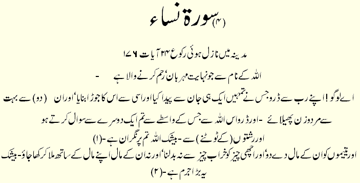 Holy Quran > Urdu Translation > Surah 4- An-Nisa