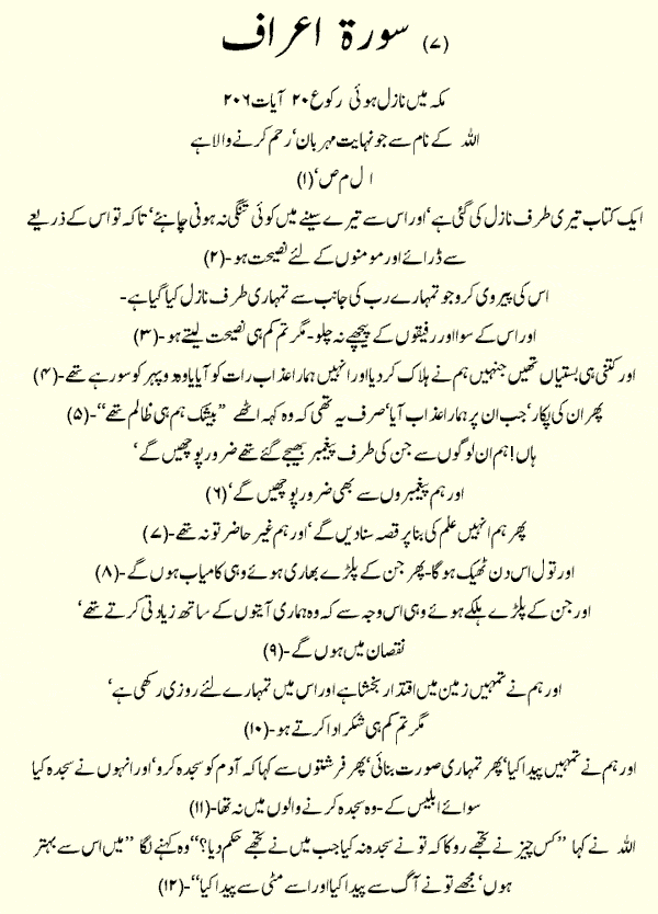 Holy Quran > Urdu Translation > Surah 7- Al-A'raf
