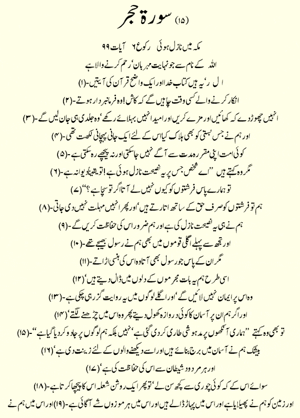 Holy Quran > Urdu Translation > Surah 15- Al-Hijr