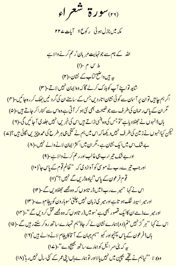 Holy Quran > Urdu Translation > Surah 26- Ash-Shuara