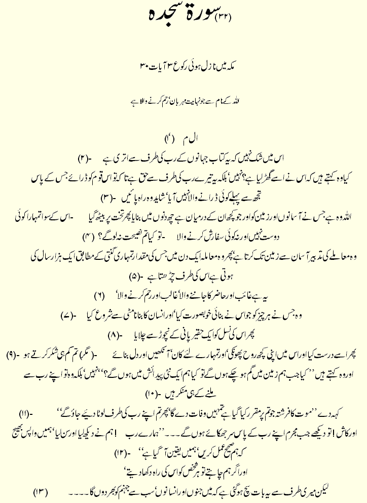 Holy Quran > Urdu Translation > Surah 32- As-Sajda