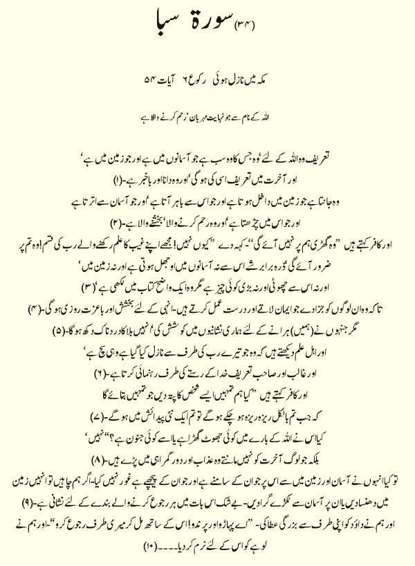 Holy Quran > Urdu Translation > Surah 34- Saba