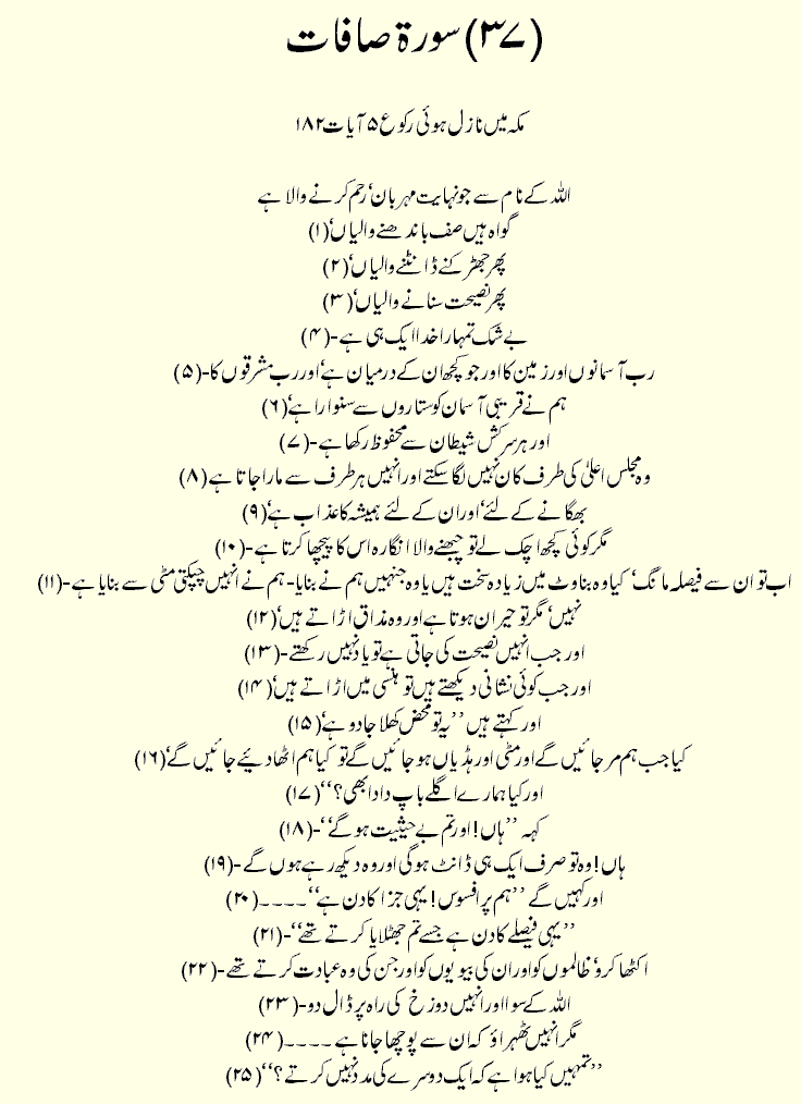 Holy Quran > Urdu Translation > Surah 37- As-Saaffat