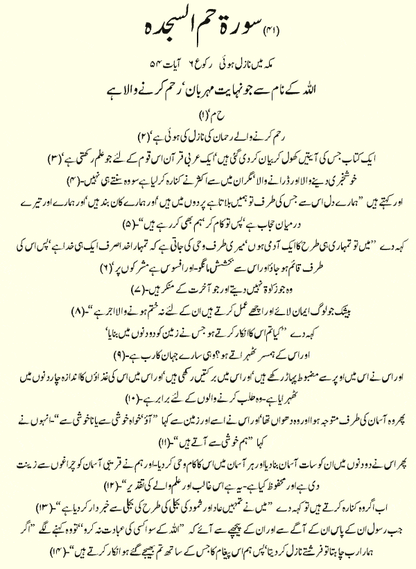 Holy Quran > Urdu Translation > Surah 41- Fussilat