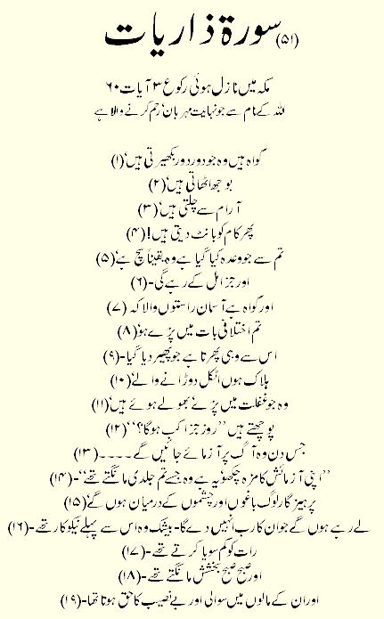 Holy Quran > Urdu Translation > Surah 51- Adh-Dhariyat