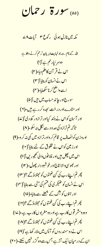 Holy Quran > Urdu Translation > Surah 55- Ar-Rahman