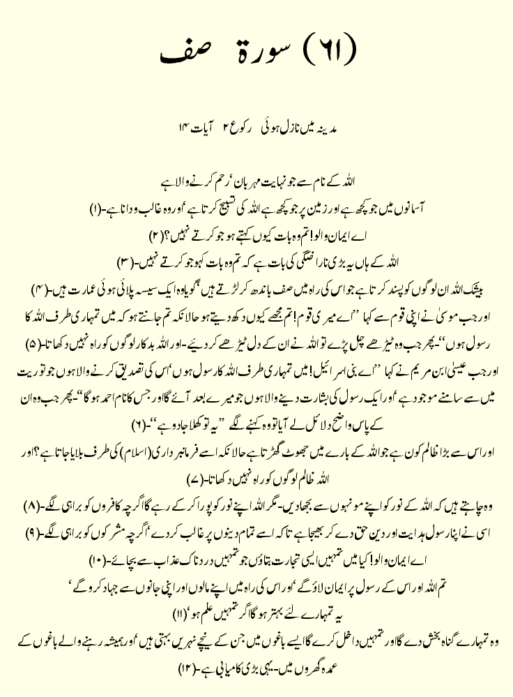 Holy Quran > Urdu Translation > Surah 61- As-Saff