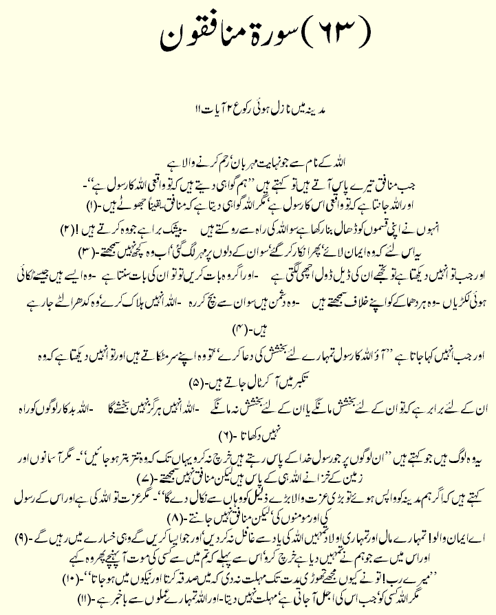 Holy Quran > Urdu Translation > Surah 63- Al-Munafiqoon