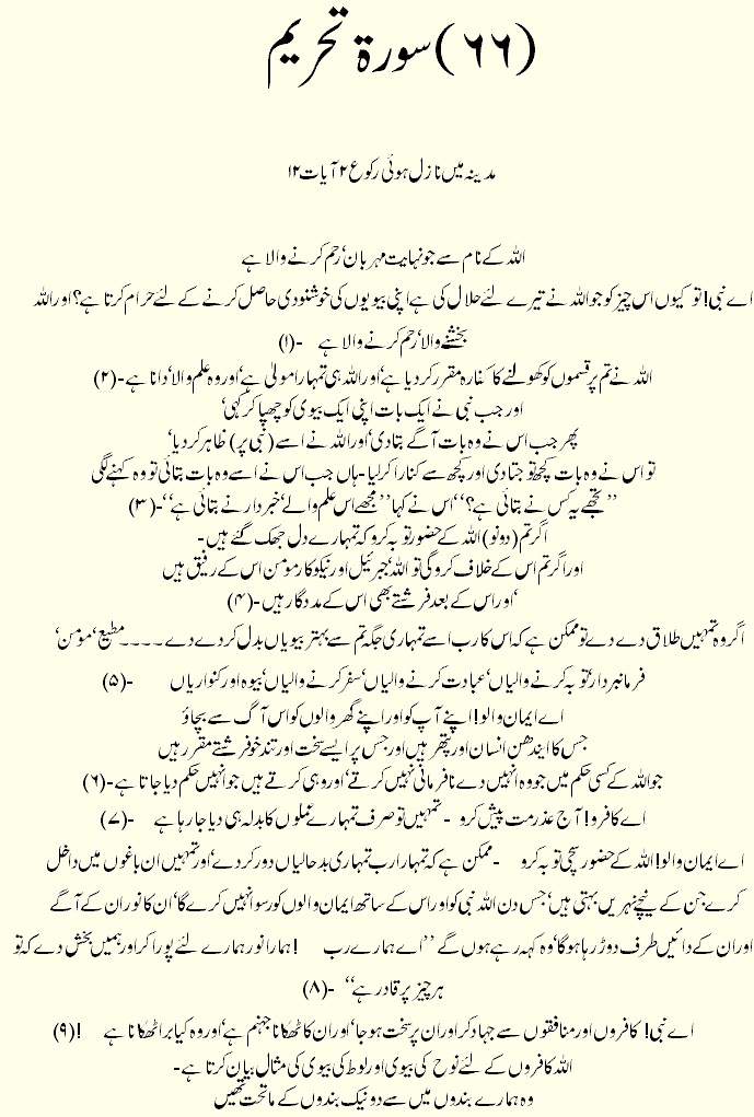 Holy Quran > Urdu Translation > Surah 66- At-Tahrim