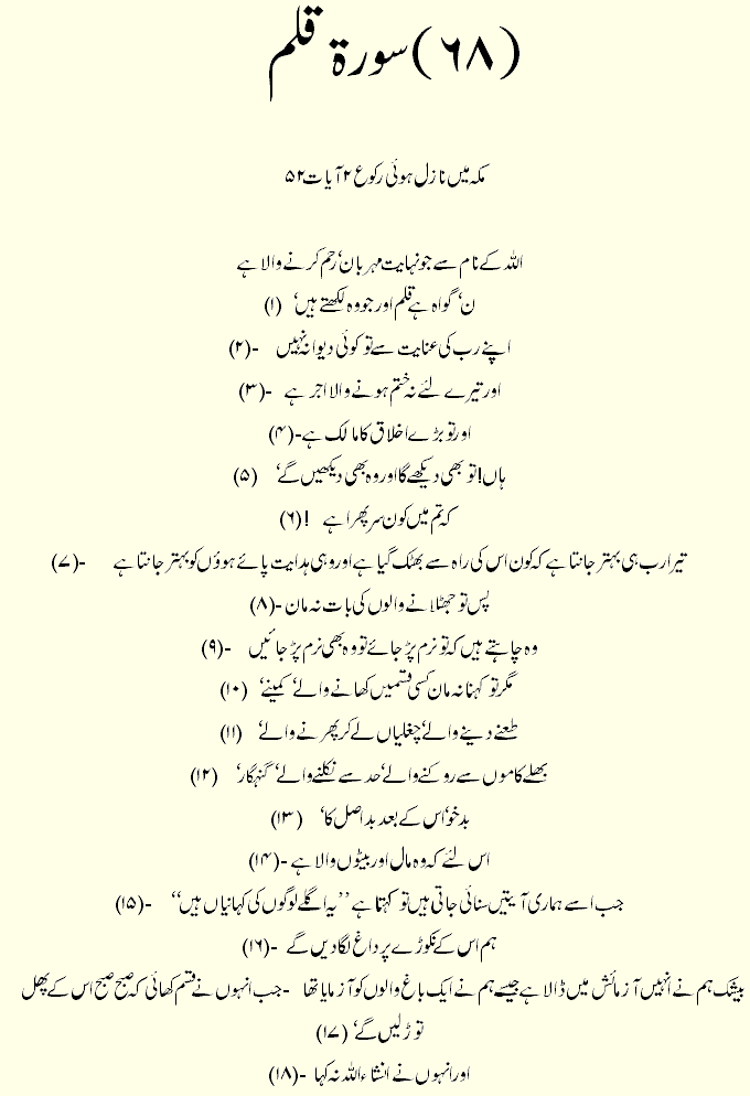 Holy Quran > Urdu Translation > Surah 68- Al-Qalam