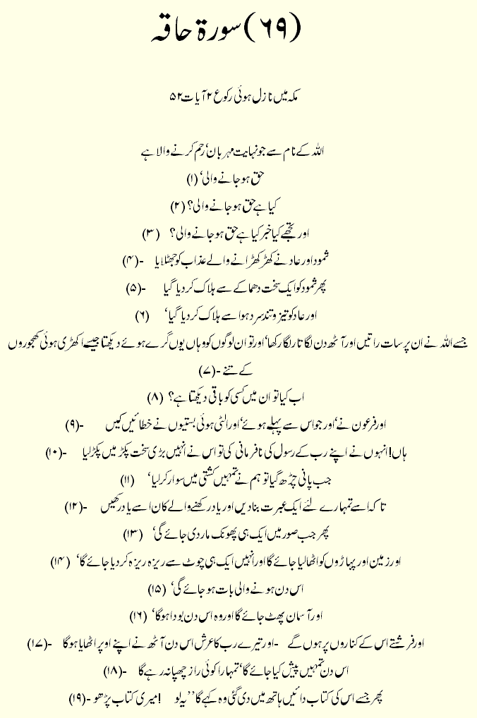 Holy Quran > Urdu Translation > Surah 69- Al-Haaqqa