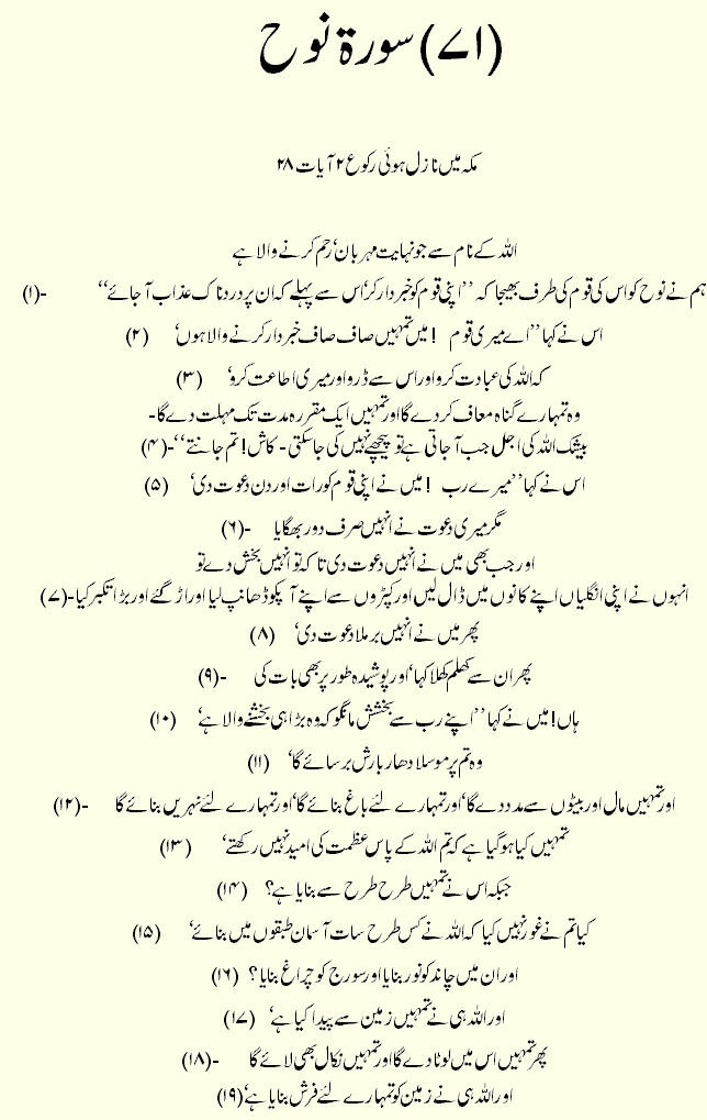 Holy Quran > Urdu Translation > Surah 71- Nooh