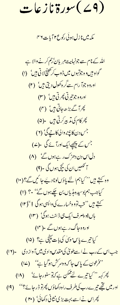 Holy Quran > Urdu Translation > Surah 79- An-Nazi'at