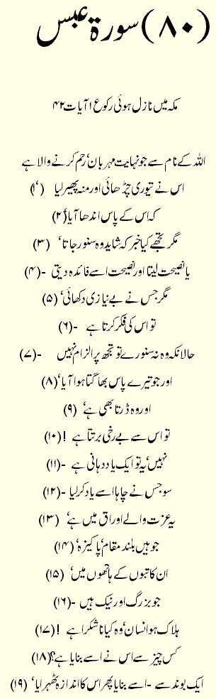 Holy Quran > Urdu Translation > Surah 80- Abasa
