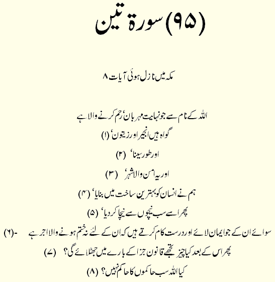 Holy Quran > Urdu Translation > Surah 95- At-Tin