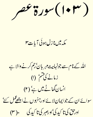 Holy Quran > Urdu Translation > Surah 103- Al-Asr