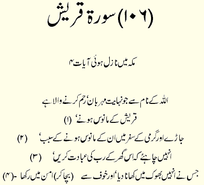 Holy Quran > Urdu Translation > Surah 106- Quraish