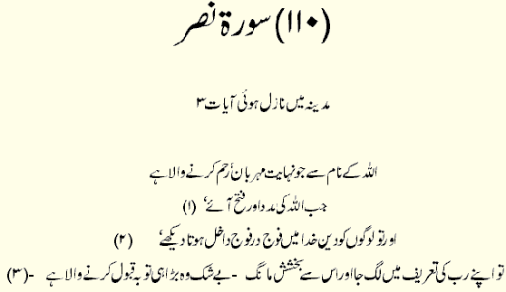 Holy Quran > Urdu Translation > Surah 110- An-Nasr