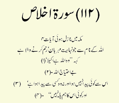 Holy Quran > Urdu Translation > Surah 112- Al-Ikhlas