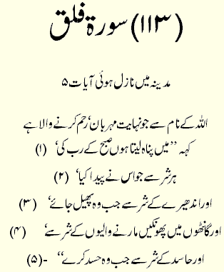 Holy Quran > Urdu Translation > Surah 113- Al-Falaq