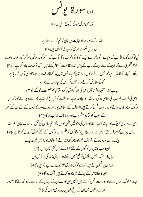 Holy Quran > Urdu Translation > Surah 10- Yunus