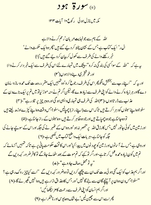 Holy Quran > Urdu Translation > Surah 11- Hud