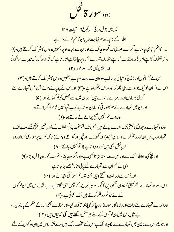 Holy Quran > Urdu Translation > Surah 16- An-Nahl