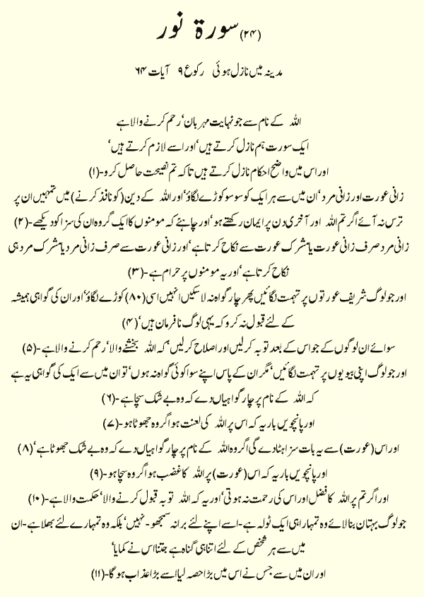 Holy Quran > Urdu Translation > Surah 24- An-Noor