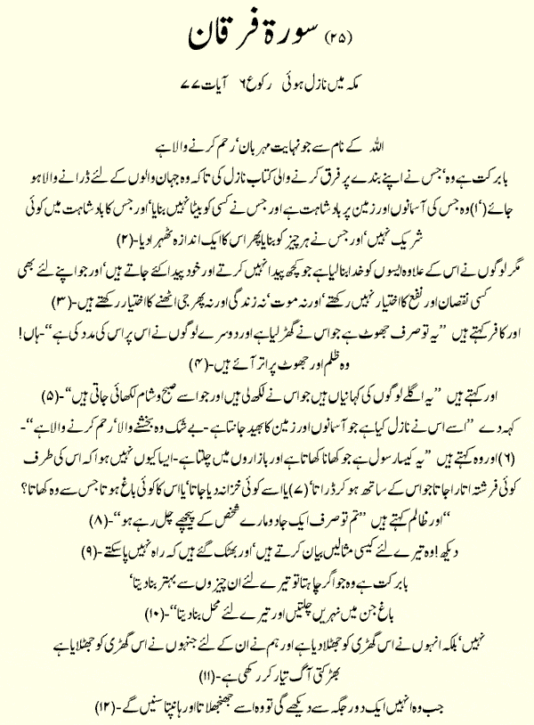 Holy Quran > Urdu Translation > Surah 25- Al-Furqan
