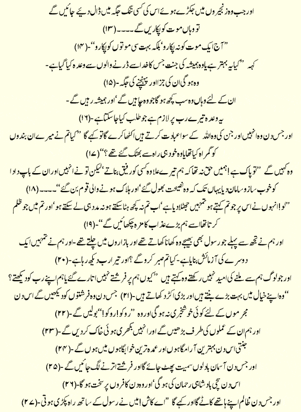 Holy Quran > Urdu Translation > Surah 25- Al-Furqan
