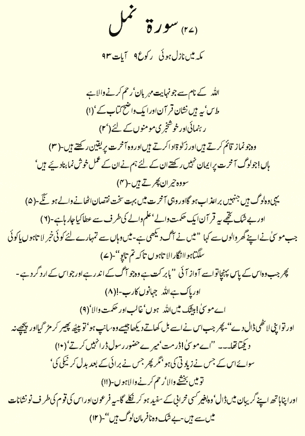 Holy Quran > Urdu Translation > Surah 27- An-Naml