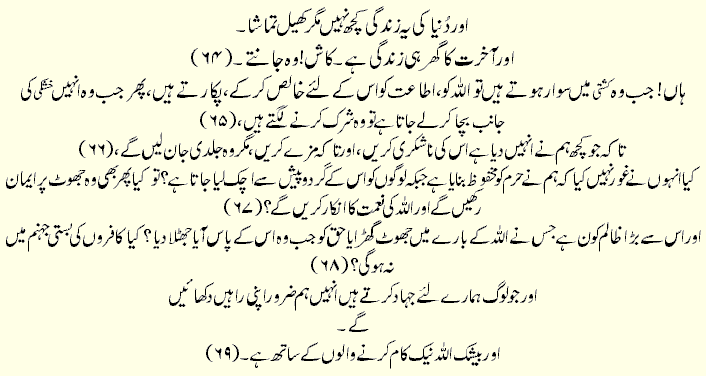 Holy Quran > Urdu Translation > Surah 29- Al-Ankaboot