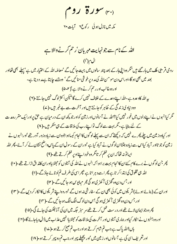 Holy Quran > Urdu Translation > Surah 30- Ar-Room