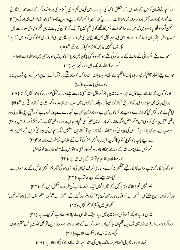 Holy Quran > Urdu Translation > Surah 31- Luqman