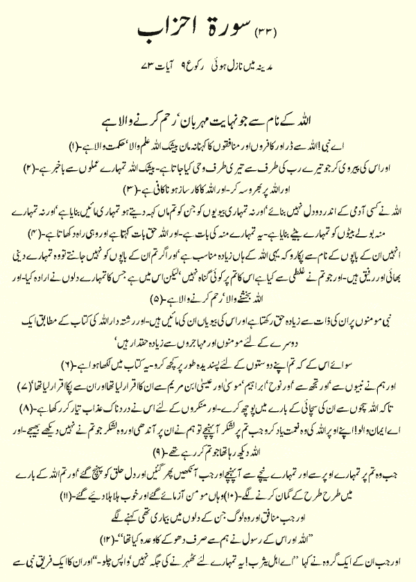 Holy Quran > Urdu Translation > Surah 33- Al-Ahzab