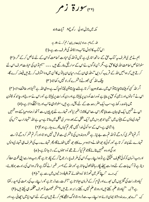 Holy Quran > Urdu Translation > Surah 39- Az-Zumar