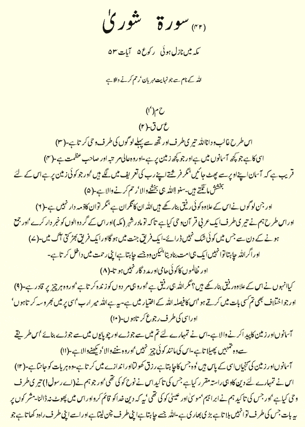 Holy Quran > Urdu Translation > Surah 42- Ash-Shura