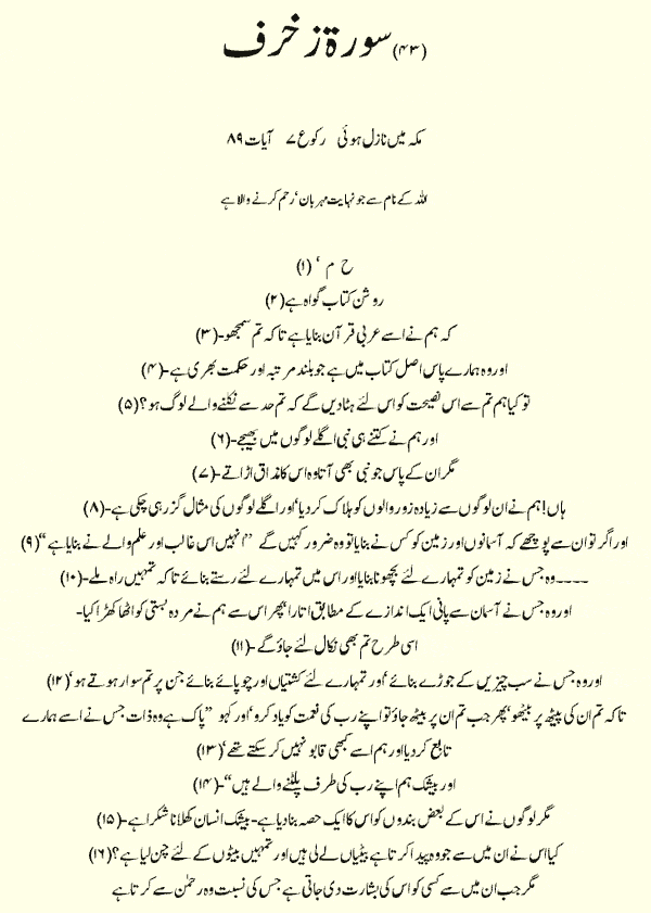 Holy Quran > Urdu Translation > Surah 43- Az-Zukhruf