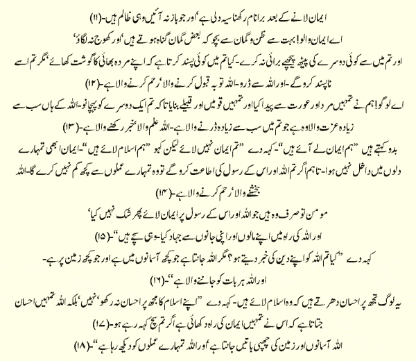 Holy Quran > Urdu Translation > Surah 49- Al-Hujraat
