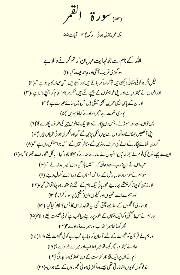 Holy Quran > Urdu Translation > Surah 54- Al-Qamar