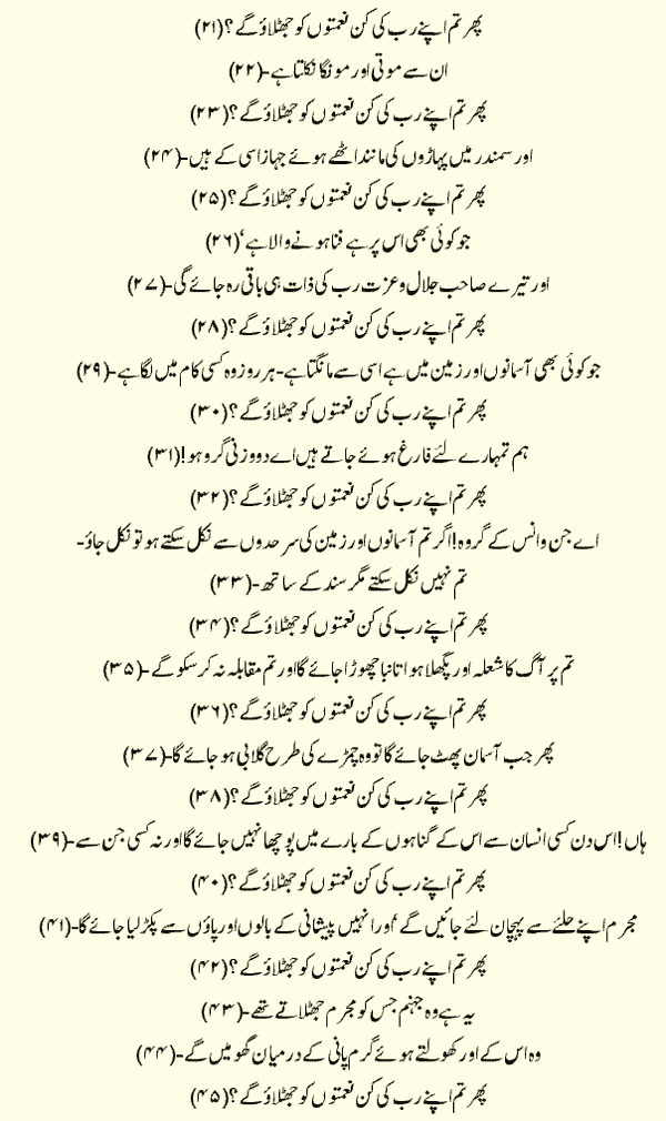 Holy Quran > Urdu Translation > Surah 55- Ar-Rahman