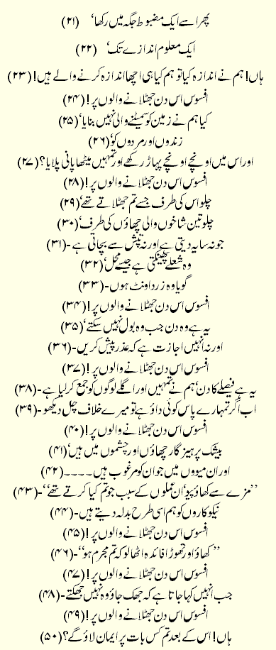 Holy Quran > Urdu Translation > Surah 77- Al-Mursalat