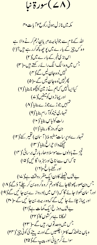 Holy Quran > Urdu Translation > Surah 78- An-Naba