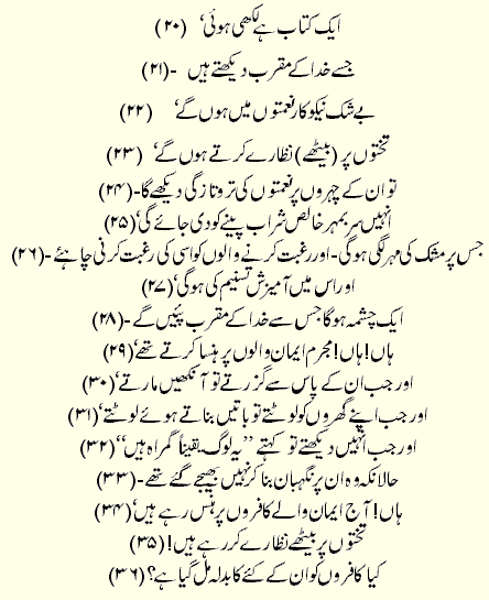 Holy Quran > Urdu Translation > Surah 83- Al-Mutaffifin