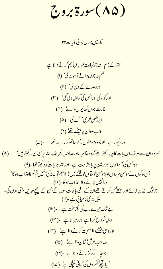 Holy Quran > Urdu Translation > Surah 85- Al-Burooj