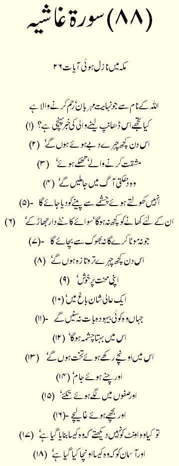 Holy Quran > Urdu Translation > Surah 88- Al-Ghashiya