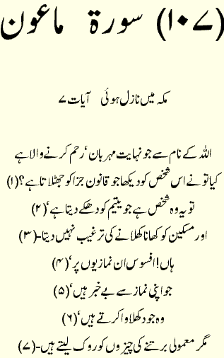 Holy Quran > Urdu Translation > Surah 107- Al-Ma'un