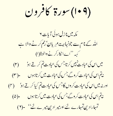 Holy Quran > Urdu Translation > Surah 109- Al-Kafiroon